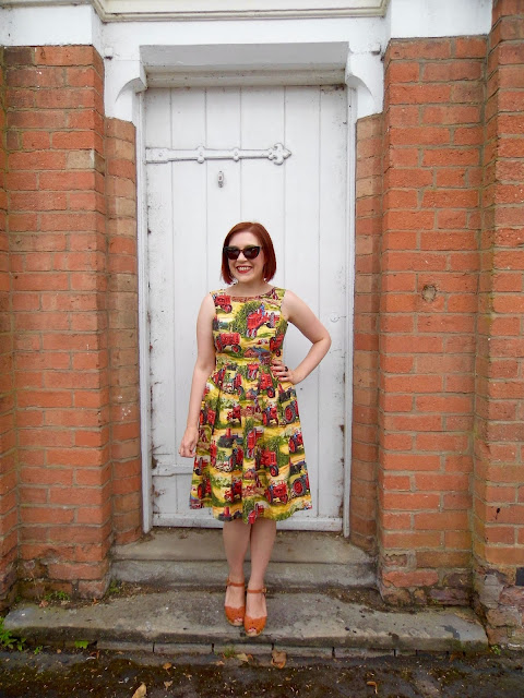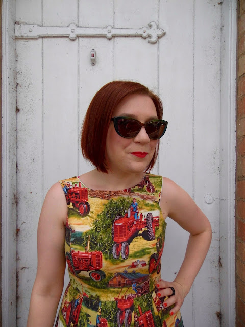 Having sewed this bodice a few times and worn its various iterations a fair bit, I think I may have shortened it a tiny bit too much. I'm not sure this dress hits me at the most flattering part of my waist. But I'm wearing a dress with tractors all over it, for fuck's sake. It's never going to be super flattering or elegant!