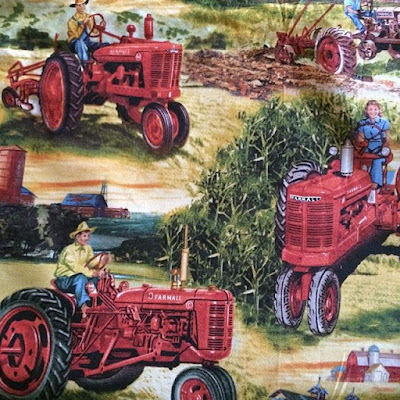 So anyway - life has been busy, but in a nice way. I have a free weekend this weekend and am planning to spend at least some of it sewing. As ever, I have a little bit of a backlog of projects to show you. Today it's one that I made from some fabric that I bought when we were in New York in May. Fabric with tractors on it.