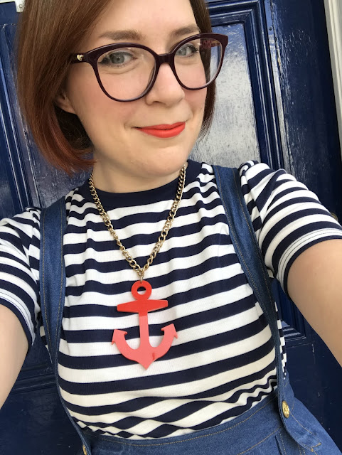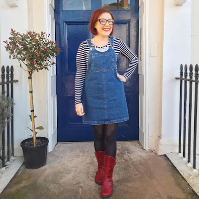 Me, in December, stressed out to the max. I bought the dungaree dress out of curiosity, really, to see if I liked the style and it suited me. The whole entire sewing blogosphere had gone mad for the Tilly and the Buttons Cleo pinafore and I was extremely certain that I did not want to spend the time making and fitting one, but I was happy enough to spend £35 to see if the style suited me. I ended up wearing this (and a burgundy cord one that Nic bought me a few weeks later) a fair bit in the winter. It's not that I loved wearing it or that was was warm and comfortable, but I honestly think that in a very stressful and unhappy time, it was comforting to wear something that looked so childish. If I couldn't go back to the comfort and safety of childhood, at least I could look like I had.