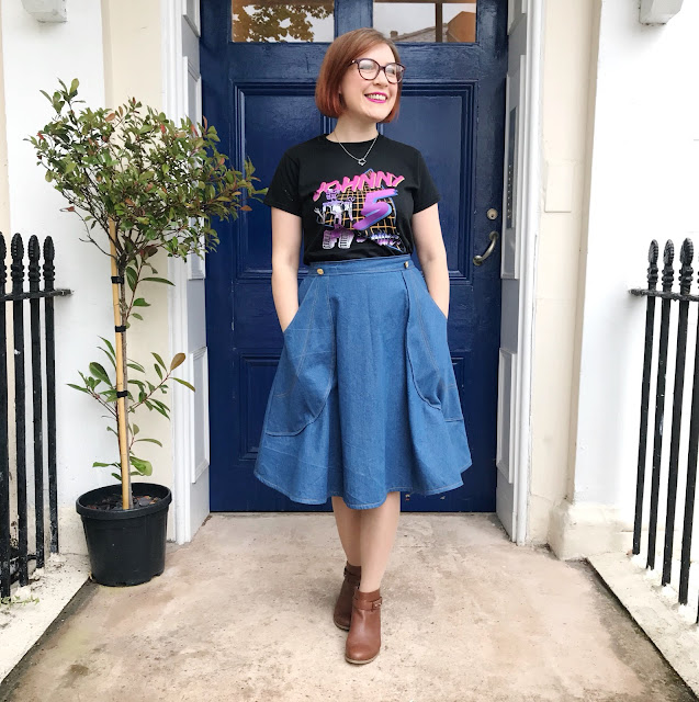 Yes, my t-shirt DOES have Johnny 5 on it! Nic bought it for me from Underboard earlier in the summer - I didn't have anything to wear it with and it was too good to wear as just pyjamas. Maybe I made a skirt just so this t-shirt could get an outing?! You might not know this about me, but Short Circuit 2 is one of my favourite films ever. NOT Short Circuit, which is vastly inferior, but Short Circuit 2 - it is very problematic in some respects (Fisher Stevens in brownface... like, WTF) but as a story of an outsider trying to be accepted by society it is ICONIC.